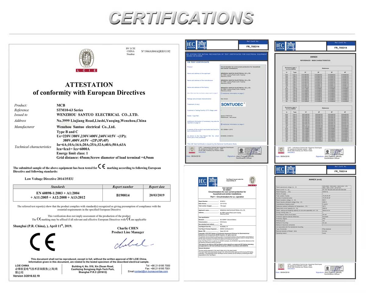 1.Izbira: Ko izbirate MCB, morate upoštevati dejavnike, kot so nazivni tok tokokroga, raven napetosti, zaščitne značilnosti in ali je potrebna zaščita pred uhajanjem. Prav tako je pomembno zagotoviti, da je izbrani miniaturni odklopnik STM10-63 v skladu z lokalnimi standardi in predpisi o električni varnosti.